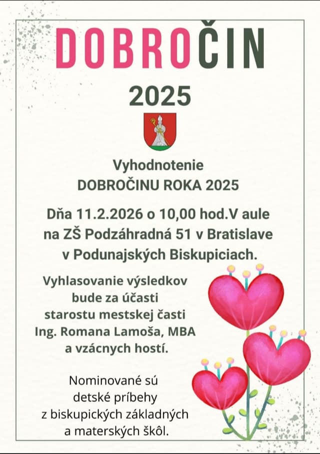Miesto konanie: Aula ZŠ Podzáhradná, Podunajské Biskupice
